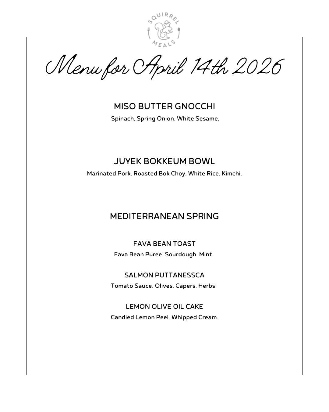 If you are late to order for this upcoming week, feel free to email us at Squirrelmealspdx@gmail.com to see if we can add you to the list!